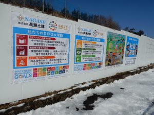 高山市久々野地内 西洞の国道沿いの塀にSDGsの取り組みについて紹介させて頂きました。通行する際には是非ご覧ください。